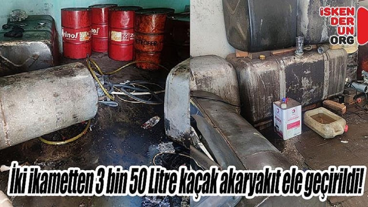 Edinilen bilgilere göre, Hatay Emniyet Müdürlüğü görevlilerince kaçakçılık olaylarının önlenmesine yönelik yapılan çalışmalar kapsamında önceki gün Kırıkhan Alsancak Mahallesi'nde bulunan İ.S. ve M.K.'nın ikametlerinde arama yapıldı. İkametin bahçesinde, bina içerisinde eski araçların depoları, variller ve bidonlar içerisinde muhafaza edilen 3050 litre kaçak akaryakıt ele geçirildi.