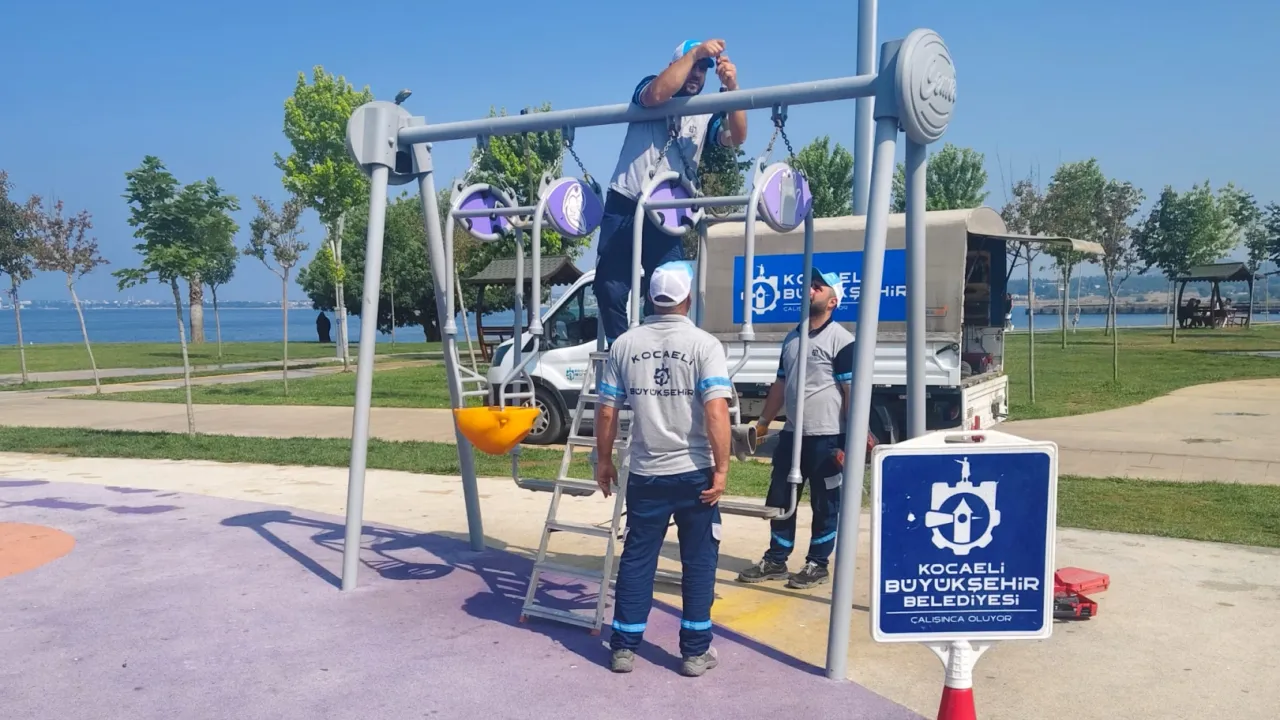 Kocaeli Büyükşehir Belediyesi, vatandaşların sağlıklı ve keyifli zaman geçirmesi için çocuk oyun parkları ve spor alanlarında yaptığı bakım ve yenileme çalışmalarıyla, kaliteli yaşam alanları yaratmaya devam ediyor.