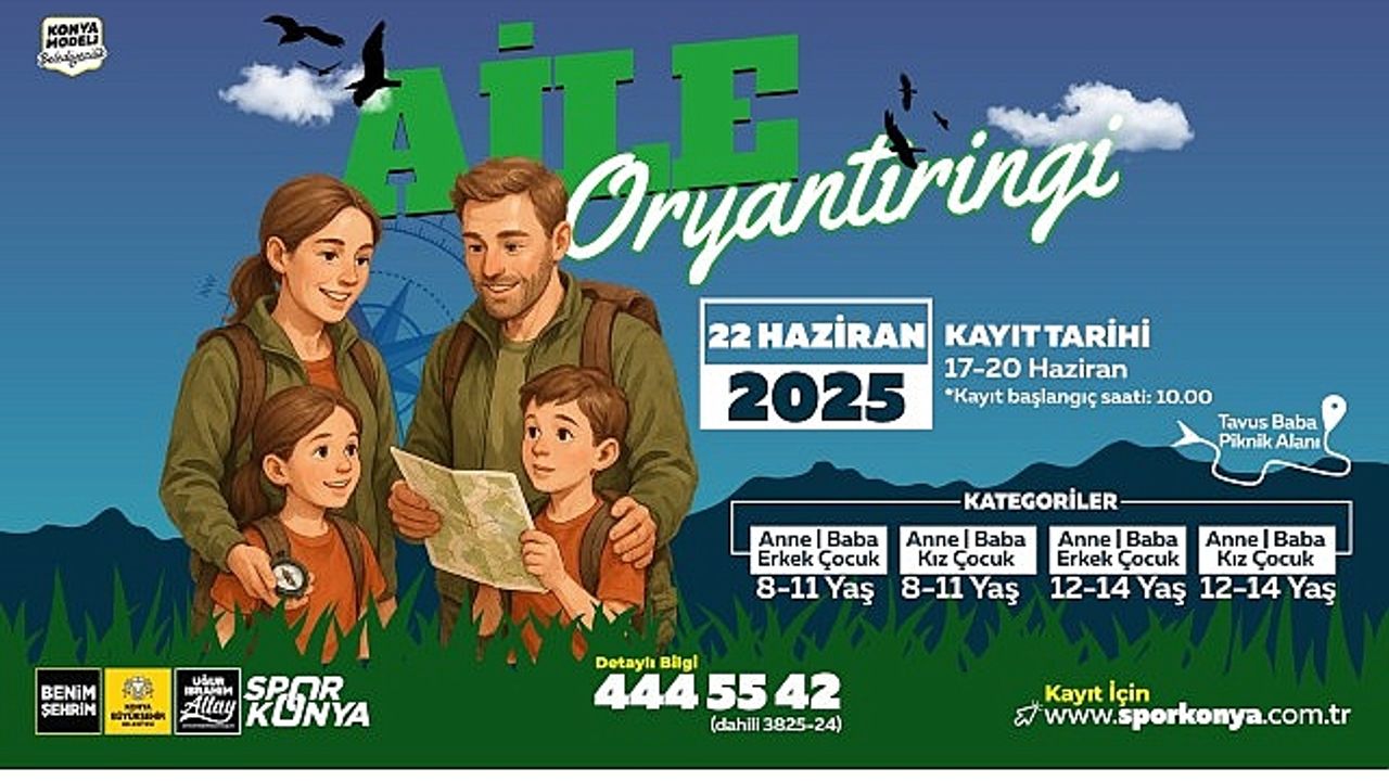 Konya Büyükşehir Belediyesi, doğasever aileleri bir araya getirecek "Aile Oryantiringi" etkinliğini, 22 Haziran tarihinde Meram Tavus Baba Piknik Alanı’nda gerçekleştirecek.