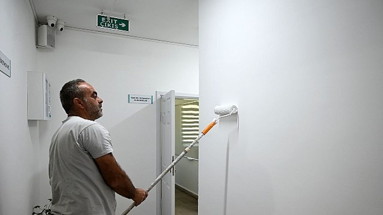 Kemer Belediye Başkanı Necati Topaloğlu tarafından eğitime kazandırılan Kemer Belediyesi Ahmet Erkal Destek Eğitim Kursu’nda boya ve badana çalışmaları gerçekleştiriliyor.