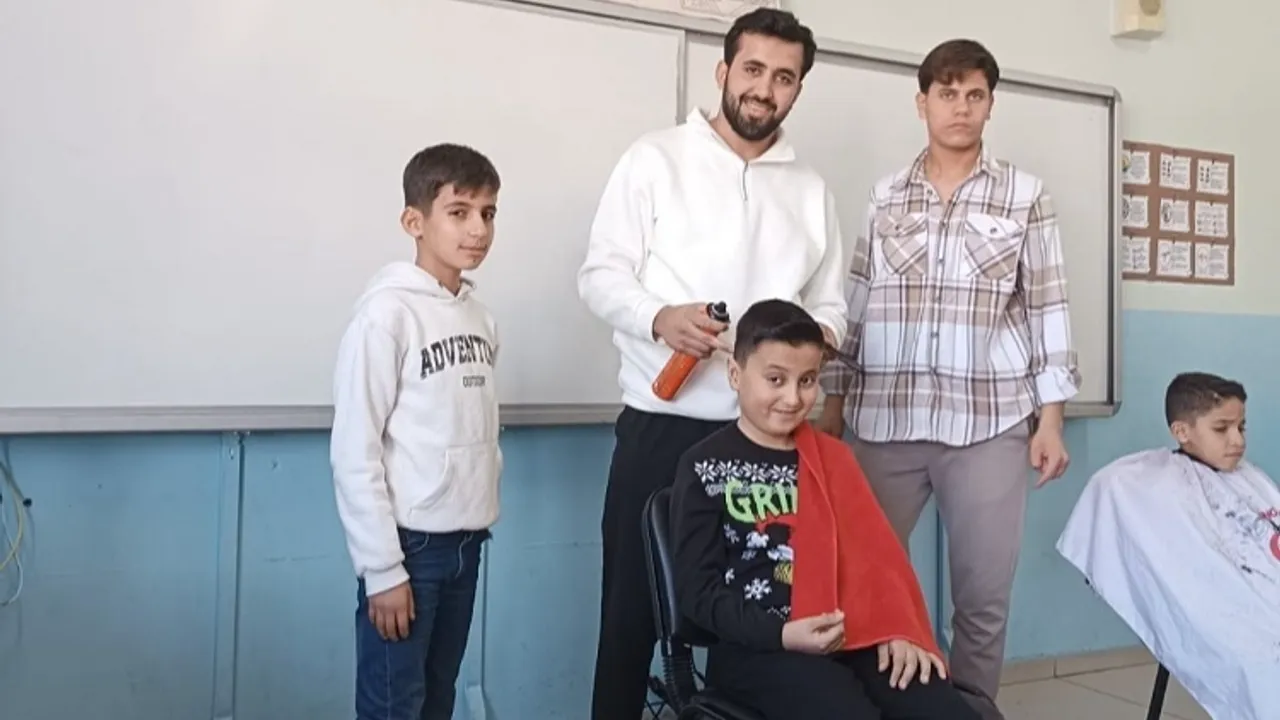 Daha sonra öğrencilerin sorularını yanıtlayan Bilen, program sonunda öğrencileri tıraş etti.