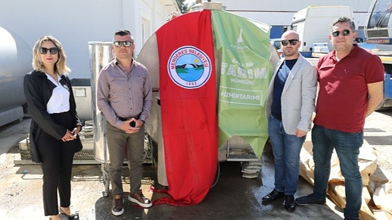 Menderes Belediyesi tarafından Hataylı süt üreticisine destek olmak amacıyla 2 adet süt tankı deprem bölgesine hibe edildi.