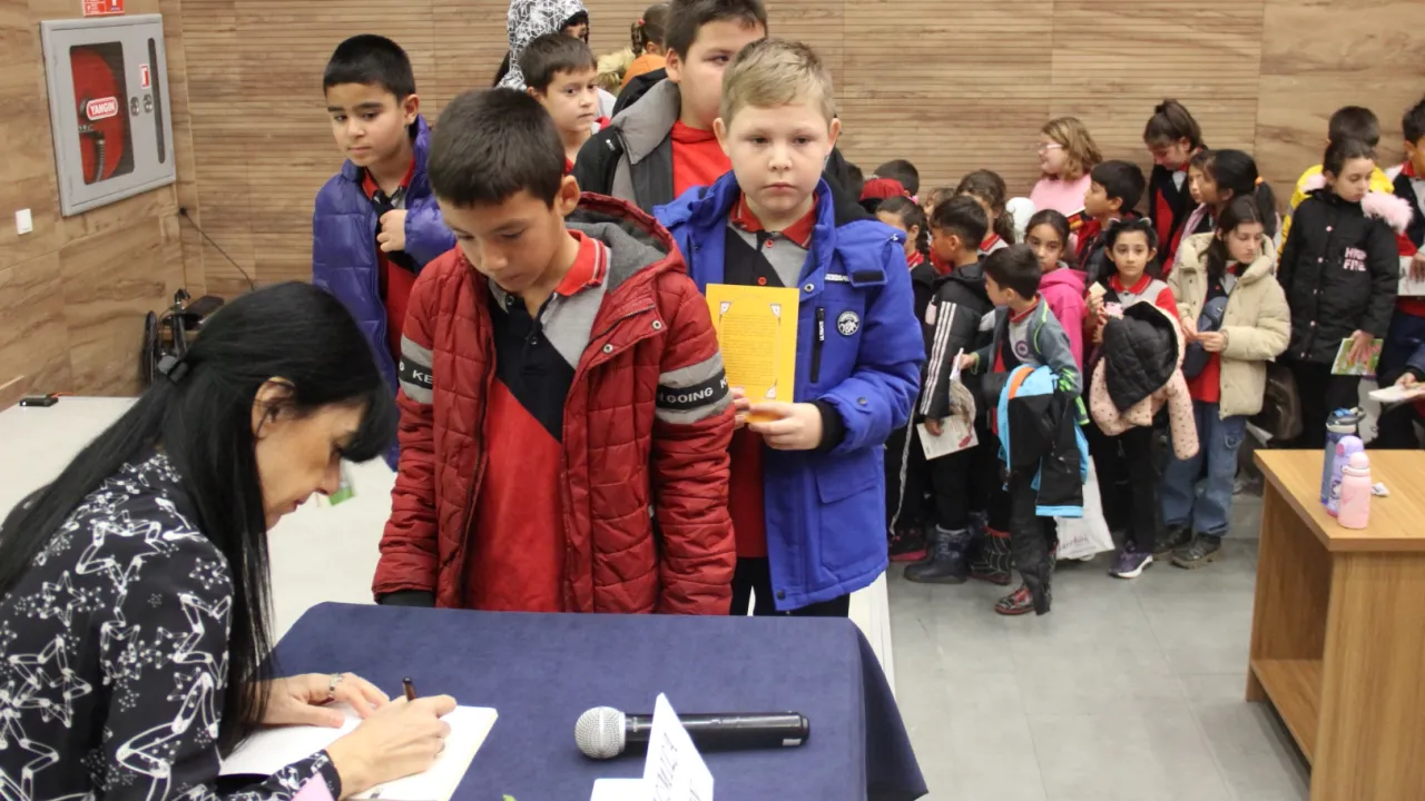 Muğla Büyükşehir Belediyesi, çocuklara okuma alışkanlığı kazandırmak amacıyla ‘Çocuk Yazar Buluşmaları’na devam ediyor.MUĞLA (İGFA) - Çocukların okuma alışkanlıklarına katkı sağlaması amacıylaMuğla Büyükşehir Belediyesi tarafından başlatılan ‘Çocuk Yazar Buluşmaları’ Kasım ayında Banda Kitabevi iş birliğiyle devam etti. Çocuklar Yazar Almila Aydın ve Hanzade Servi ile buluştu. Menteşe ilçesinde bulunan farklı okullardan 600 öğrencinin katıldığı buluşma çocukların beğenisini kazandı.