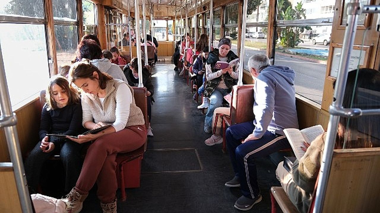 Antalya Büyükşehir Belediyesi Nostalji Tramvayı, "Kitap Okuma Halkaları" etkinliğine ev sahipliği yaptı. Öğrenci ve velileri, tramvay yolculuğu sırasında kitap okuyarak, farkındalık oluşturdu.