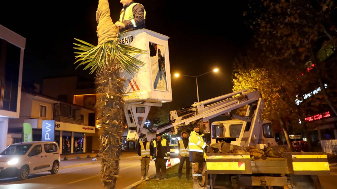 Park ve Bahçeler Dairesi Başkanlığı’ndan yapılan açıklamada, “Şehrimizin doğal güzelliklerini korumak ve daha estetik bir görünüm kazandırmak için gece gündüz demeden çalışıyoruz. 15 Temmuz Caddesi’ndeki palmiyelerimizi kış koşullarına karşı koruma altına aldık. Bu çalışmalarla hem doğayı hem de yaya ve araç güvenliğini ön planda tutmaya devam ediyoruz” denildi.