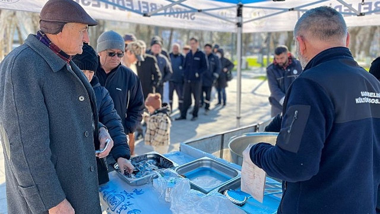 Saray Belediyesi, 6 Şubat Kahramanmaraş merkezli depremlerin 2. yıldönümü dolayısıyla hayatını kaybeden vatandaşların anısına Belediye önünde lokma dağıttı.
