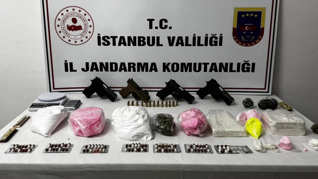 İstanbul İl Jandarma Komutanlığı Şile İlçe Jandarma Komutanlığı ekiplerince Sahilköy Mahallesi bölgesinde yapılan uyuşturucuyla mücadele operasyonlarında çeşitli uyuşturucu maddeleri ve silah ele geçirildi.NURCAN KIRCALI / İSTANBUL (İGFA) - İstanbul İl Jandarma Komutanlığı Şile İlçe Jandarma Komutanlığı ekipleri tarafından Şile Sahilköy Mahallesi'nde uyuşturucuyla mücadele kapsamında operasyon düzenlendi. Opersyonda, 5 kilo 100 gram Kokain, 60 gram extacy toz, 55 gram marihuana, 190 gram afyon sakızı, 90 adet lyrica hap, 4 adet tabanca, 25 adet 9 milimetre çapında tabanca fişeği, 2 hassas terazi ele geçirildi. Yakalanan şüpheli hakkında adli işlem başlatıldı.