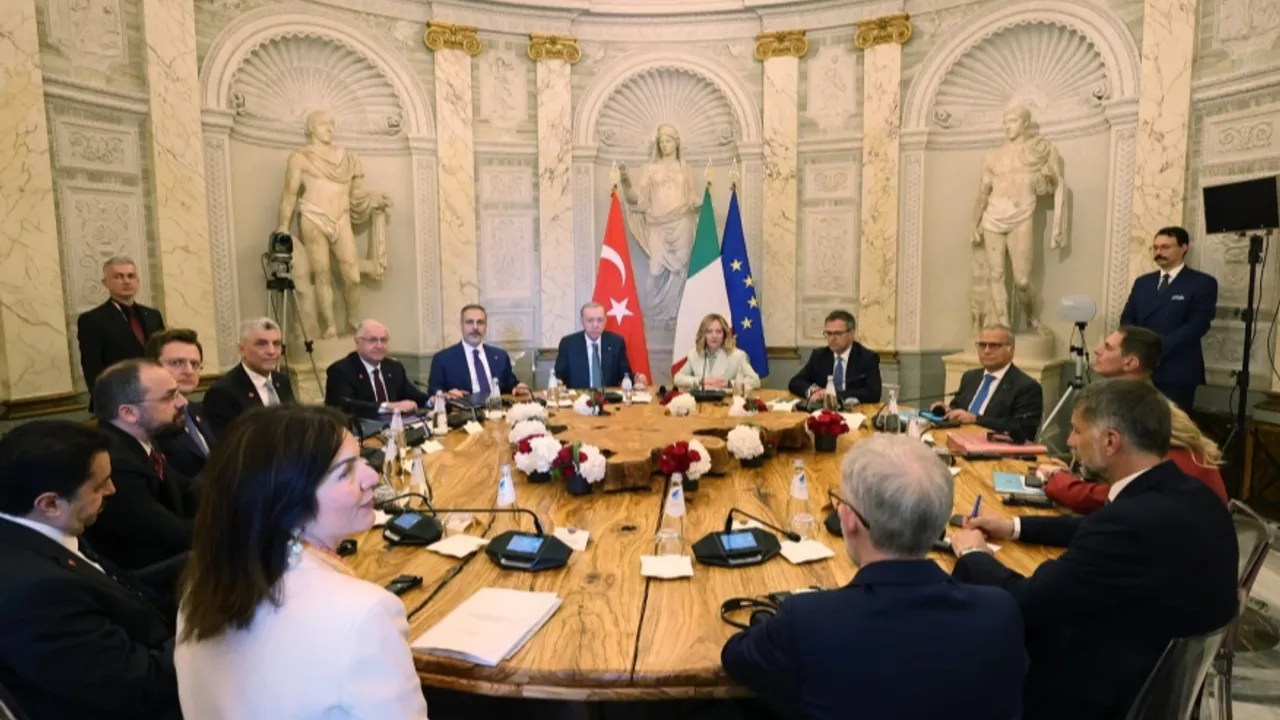 Türkiye-İtalya 4. Hükûmetlerarası Zirvesi, Cumhurbaşkanı Recep Tayyip Erdoğan ve İtalya Başbakanı Giorgia Meloni başkanlığında Villa Pamphili Konutu'nda başladı.ANKARA (İGFA) - İletişim Başkanlığı'ndan aktarılan habere göre zirveye, Dışişleri Bakanı Hakan Fidan, Aile ve Sosyal Hizmetler Bakanı Mahinur Özdemir Göktaş, Gençlik ve Spor Bakanı Osman Aşkın Bak, Kültür ve Turizm Bakanı Mehmet Nuri Ersoy, Millî Savunma Bakanı Yaşar Güler, Sanayi ve Teknoloji Bakanı Mehmet Fatih Kacır, Ticaret Bakanı Ömer Bolat, AK Parti Genel Başkan Yardımcıları Halit Yerebakan, Faruk Acar, Cumhurbaşkanlığı İletişim Başkanı Fahrettin Altun ve Cumhurbaşkanı Dış Politika ve Güvenlik Başdanışmanı Akif Çağatay Kılıç, Cumhurbaşkanı Başdanışmanı Çağrı Erhan, Cumhurbaşkanlığı Savunma Sanayii Başkanı Haluk Görgün katıldı.