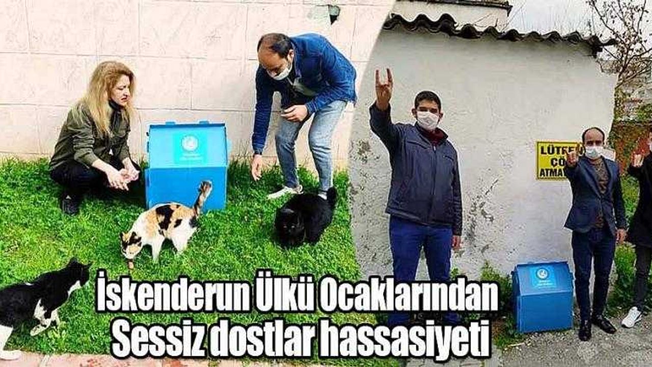Şehrin muhtelif yerlerine sokaktaki kedi-köpeklerin de yaşam haklarının bulunduğu düşüncesiyle hassasiyet gösteren İskenderun Ülkü Ocakları üyeleri, sessiz dostların yeme-içme ve barınmalarına katkı sunuyor.