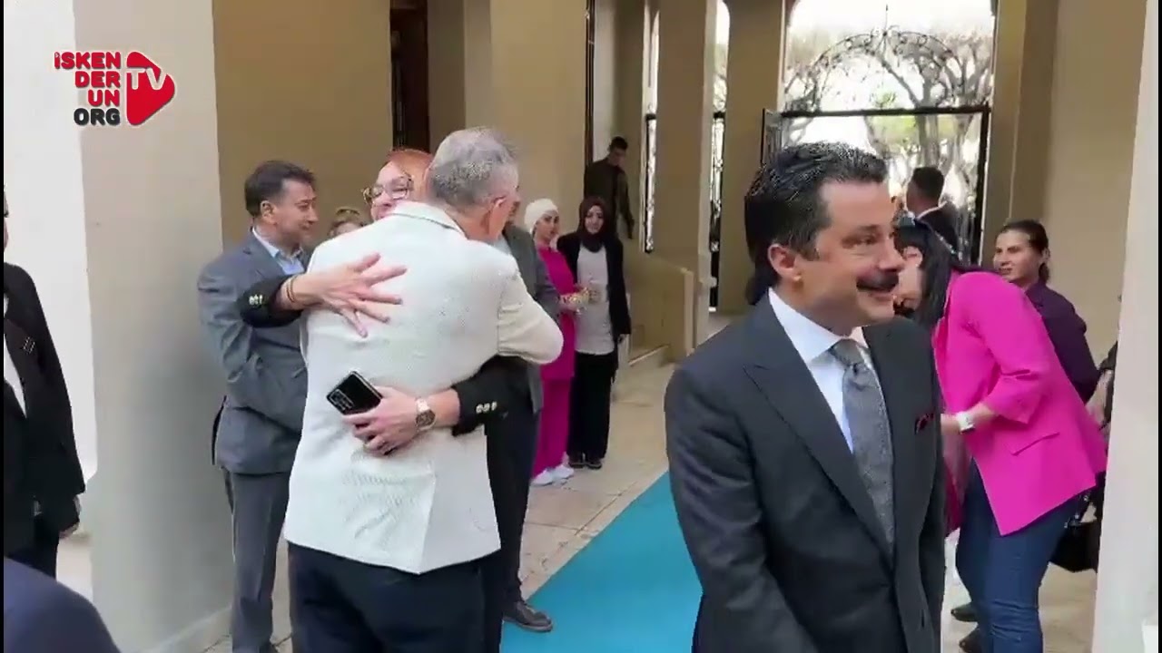 İskenderun Kaymakamlık binası avlusunda gerçekleştirilen Ramazan Bayramı tebrikatında ev sahibi kaymakam Murat Sefa Demiryürek, konukları girişte karşıladı.