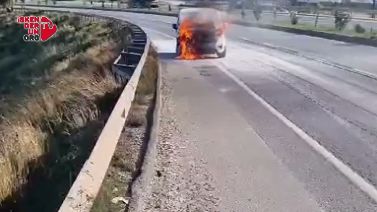 Edinilen bilgilere göre İskenderun istikametinden Belen yönünde giden doblo marka araç, rampayı çıkarken, motor kısmından önce duman, ardından alev çıktı. Sürücü aracı yolun sağına çekti, içeridekilerle birlikte dışarı çıkarak kurtuldu....