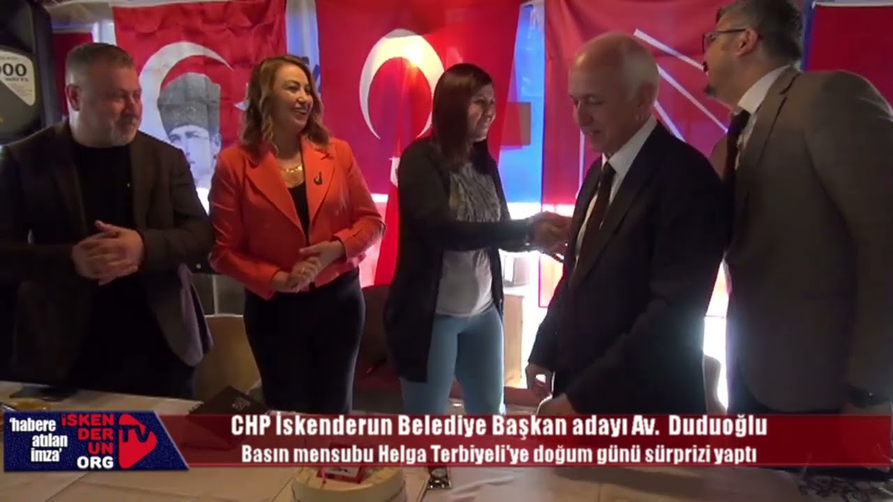 CHP Hatay Milletvekili Nermin Yıldırım Kara, İlçe teşkilatının da katıldığı İskenderun Belediye Başkan Adayı Mehmet Duduoğlu’nun basınla buluşmasında doğum günü olduğu öğrenilen Helga Terbiyeli için ayrıca sürpriz kutlama gerçekleştirildi.