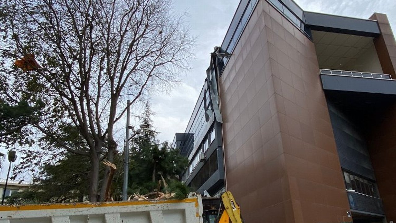 Çatı parçalarının toplanması için olay yerine kepçe araç yönlendirilirken, çatı parçalarının aşağı sarkmaya devam ettiği ve etrafta bir güvenlik şeridinin olmaması dikkatlerden kaçmadı.